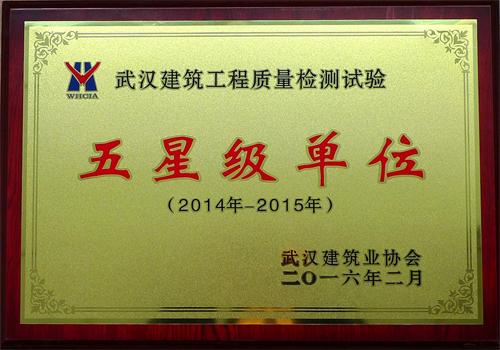 2013年我公司被武漢建筑業(yè)協(xié)會選為檢測試驗工作委員會副主任委員單位,2012-2017年連續(xù)五年被評為先進單位,2013、2015、2017年連續(xù)三屆被評為武漢市建設工程質量檢測機構五星級檢測單位。2017-20…